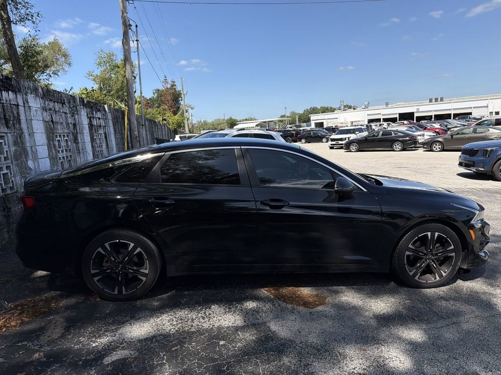 The 2021 Kia K5 GT-Line is a standout choice for those seeking a sleek, tech-savvy, and performance-oriented sedan. With its striking black exterior, this K5 GT-Line is a head-turner that commands attention on the road.